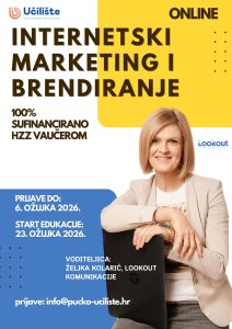 Osijek, 18. veljače 2026. – Upisujemo petu generaciju polaznika edukacije Internetski marketing i brendiranje, iskoristite posljednju priliku za ovaj vaučer. Polaznike upisujemo iz cijele Hrvatske jer se program održava online, što omogućuje veliku uštedu vremena polaznika i lakše usklađivanje edukacije s privatnim i poslovnim obvezama. Edukacija je u potpunosti sufinancirana vaučerom Hrvatskog zavoda za zapošljavanje, tako da polaznici program pohađaju besplatno. Vaučer mogu koristiti i zaposlene i nezaposlene osobe.